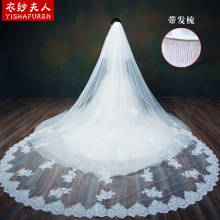 衣纱夫人新款韩式婚纱头纱新娘复古车骨蕾丝3米超长拖尾软头纱