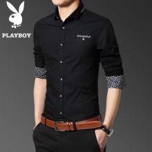 花花公子男装衬衣衬衫2017新款春季韩版修身短袖休闲寸衫男士长袖