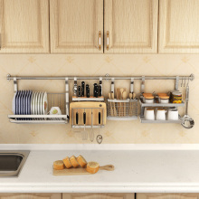 加厚不锈钢挂杆多功能厨房置物架壁挂收纳调味料刀架碗架厨房挂件
