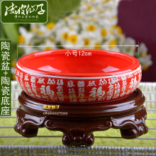 水仙花盆+木质底座 水养植物无孔多肉陶瓷花盆碗莲绿萝铜钱草鱼缸