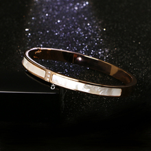 韩国时尚手镯镶钻钛钢镀18K玫瑰金贝壳手环女欧美潮个性彩金饰品