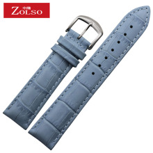 ZOLSO中隋表带 女装浅蓝色皮表带 适用女表表带 竹节纹表带