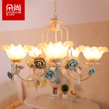 吊灯客厅8头田园花草灯饰浪漫铁艺韩式玫瑰花朵灯e27灯泡玻璃罩