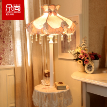 实木落地灯立式韩式客厅沙发卧室床头灯创意温馨田园蕾丝布艺蓝色