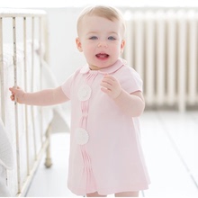 戴维贝拉短袖翻领连衣裙婴幼儿夏季纯色印花衣服女宝宝公主裙子