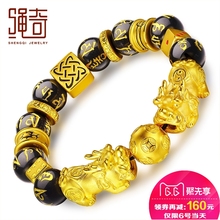 百代绳奇 公母3D硬足金貔貅转运珠六字真言玛瑙黄金手链手串男 女