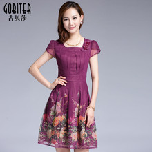 古贝莎品牌女装改良旗袍连衣裙中长款婚礼宴会妈妈装夏装短袖裙子