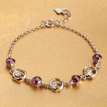 银手链女韩版甜美女生紫水晶简约银饰百搭手饰闺蜜情人节送女友