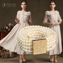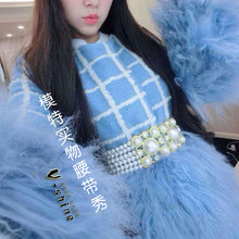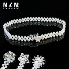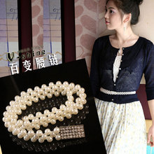 时尚百搭水钻装饰松紧腰带女包邮韩版加长连衣裙带白色珍珠细腰链