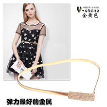 包邮裙子皮带韩版金色金属时尚松紧细腰带女银色水钻装饰裙子腰链