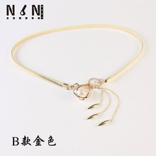 韩版蝴蝶结弹力腰链百搭免邮金色腰带女时尚金属装饰裙子腰饰H500