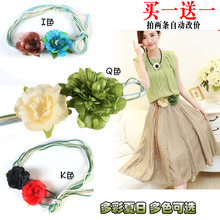 韩版花朵装饰腰链女加长色甜美玫红色细腰带包邮时尚裙子裙带腰绳