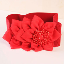 黑色连衣裙弹力腰封女红色时尚大花朵装饰松紧韩版百搭加长宽腰带