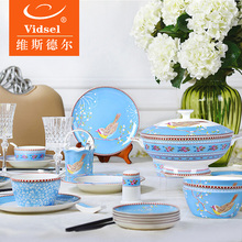 vidsel碗碟餐具套装家用碗盘中式骨瓷碗筷碗具创意韩式陶瓷器结婚