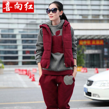 喜向红2017春装新款女士绒衫卫衣三件套加厚加绒休闲套头卫衣套装