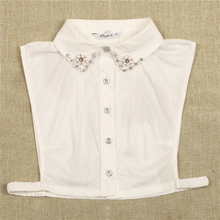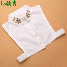 韩国秋冬季纯棉百搭假领子衬衫 白衬衣水钻珍珠娃娃领镶钻装饰女
