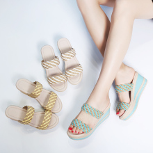 拖鞋女夏2017新款时尚厚底一字拖学生百搭外穿坡跟小码33码凉拖鞋