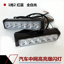 汽车中网爆闪灯超亮一拖二LED无线开道警示大功率变光三色日行灯