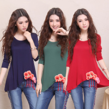 春装新款民族风女装大码宽松显瘦打底衫 绣花长袖女式T恤衫 上衣