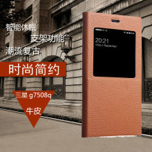 真皮世家 三星g7508q手机套手机壳 真皮视窗翻盖式保护皮套轻薄款