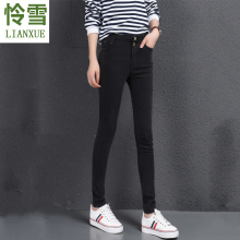 怜雪2017春秋装新款潮中腰牛仔裤女式小脚铅笔修身显瘦长裤子韩版