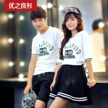 优之良衫情侣装短袖t恤 宽松女装夏套装韩版学生运动班服上衣夏装