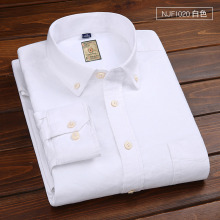 2017春秋季长袖潮青年纯棉韩版修身牛律纺男士纯色休闲商务白衬衫