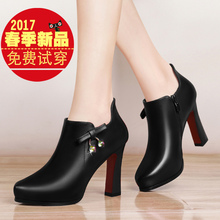 尖头高跟鞋粗跟单鞋女防水台2017年春秋季新款英伦风百搭女鞋子潮