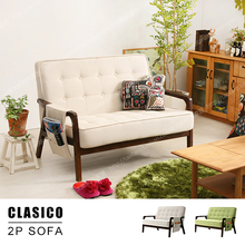 出口日本日式北欧复古田园风格布艺木扶手小户型沙发咖啡厅休闲椅