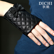 狄驰 秋冬季真皮手套女山羊皮时尚韩版可爱蝴蝶结半指羊皮手套