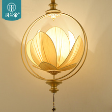 新中式吊灯 创意茶楼餐厅客厅过道酒店吧台荷花莲花布艺灯笼灯具