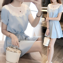 加肥加大码女装2017新款夏装胖mm胖妹妹显瘦中长款花边圆领连衣裙