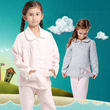 儿童睡衣套装纯棉空气层家居服女童男童夹层长袖长裤居家服