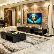 电视柜茶几组合套装伸缩电视机柜简约现代客厅家具黑色橡木皮