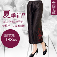 真丝香云纱七分裤夏装妈妈裤真丝香云纱女裤中老年妈妈松紧七分裤