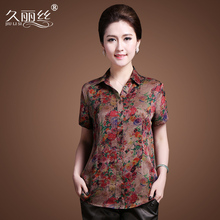 久丽丝新品真丝香云纱短袖开衫上衣 夏季中老年妈妈装翻领女衬衫