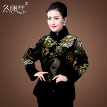 久丽丝中老年女装冬装真丝绒棉衣盘扣妈妈装冬装棉衣棉服钉珠