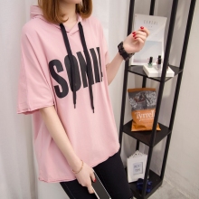 2017春夏装新款韩版学生卫衣套头女短袖字母连帽打底衫宽松卫衣女