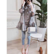 现货!【张静芝】超美华丽银灰珍珠扣蝴蝶结领娃娃百褶衬衫