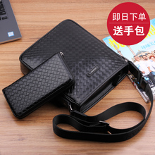 2017新款男包单肩包男士斜挎包牛皮包包竖款商务休闲包编织纹背包