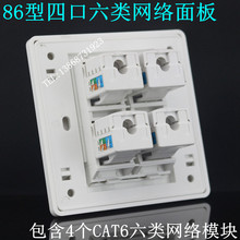 86型4口CAT6六类网线插座面板 4位电脑四口网络模块网口开关插座