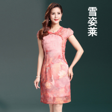 2016夏季新款妈妈装连衣裙中长款修身显瘦印花短袖大码雪纺裙子潮