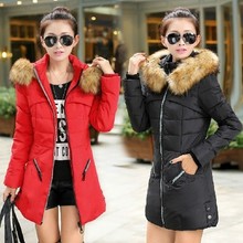 2015冬季新款羽绒棉服中长款韩版女装修身显瘦大码毛领防寒服外套
