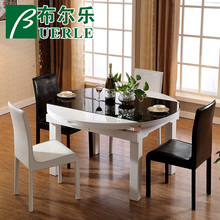 餐桌 现代钢化玻璃餐桌圆餐桌椅组合钢化玻璃餐台伸缩饭桌