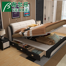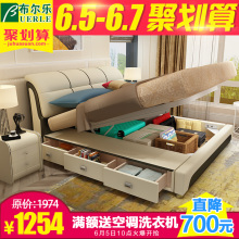 布尔乐现代简约双人床1.8米皮艺床1.5真皮床家具储物床卧室床