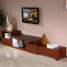 中式实木电视柜简约现代客厅家具火烧石电视柜实木水曲柳地柜伸缩