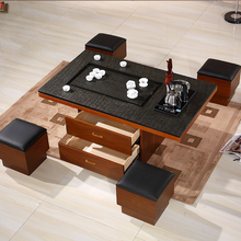 现代中式客厅大理石火烧石功夫茶几电视柜茶几组合实木储物泡茶桌