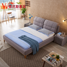 北欧实木双人床1.8米简约现代小户型卧室床布艺实木水曲柳可拆洗