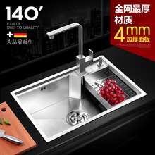 阿萨斯手工水槽4MM 加厚304不锈钢水槽套餐单槽 台上台下洗菜盆