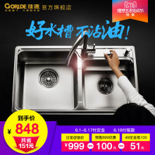 科勒佳德厨房304不锈钢水槽加厚加大双槽套餐洗菜盆带垃圾桶70927